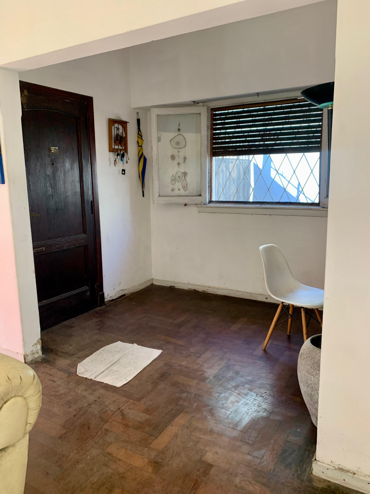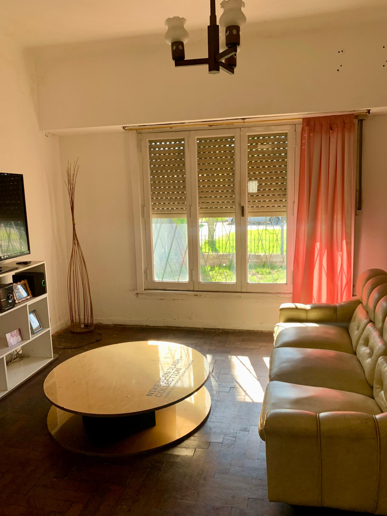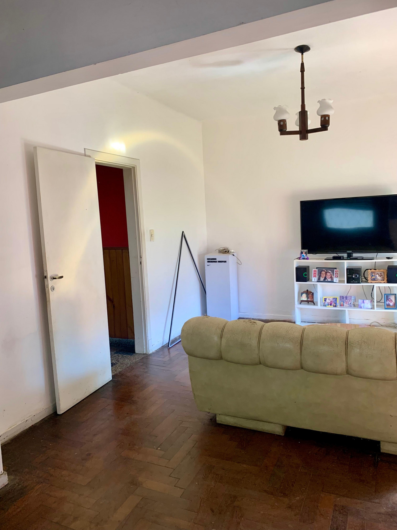 Living comedor amplio y luminoso, con dos aberturas de madera y pisos de parquet