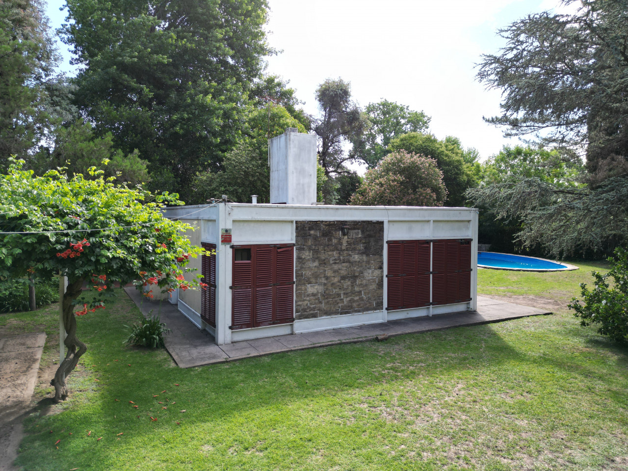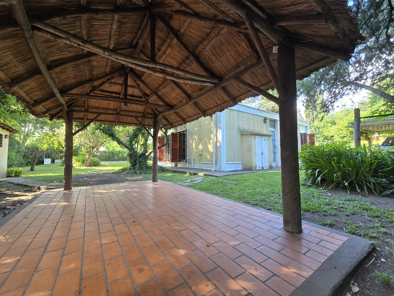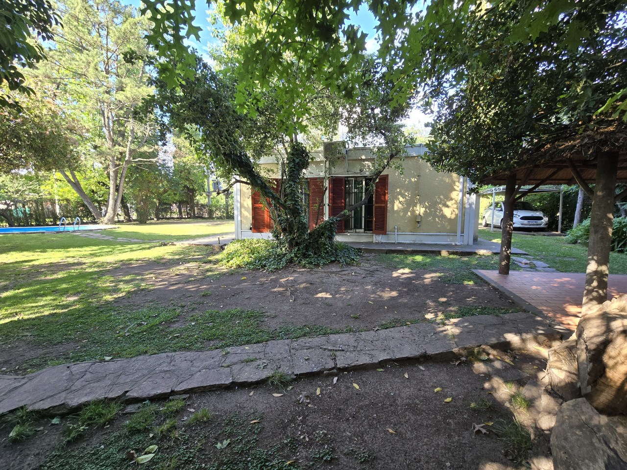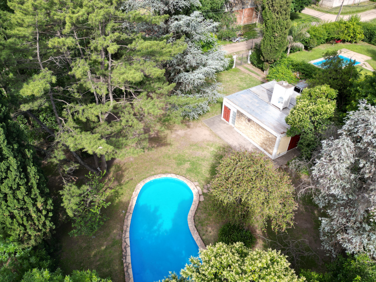Cuenta con una casa en buen estado con 2 dormitorios, cocina comedor diario, 1 baño, con un total de 53,2 mt2 cubiertos, estructura de hierro, techo de chapa, alarma, pileta con su sistema de limpieza, quincho de paja con Parrilla y Sistema de Riego.