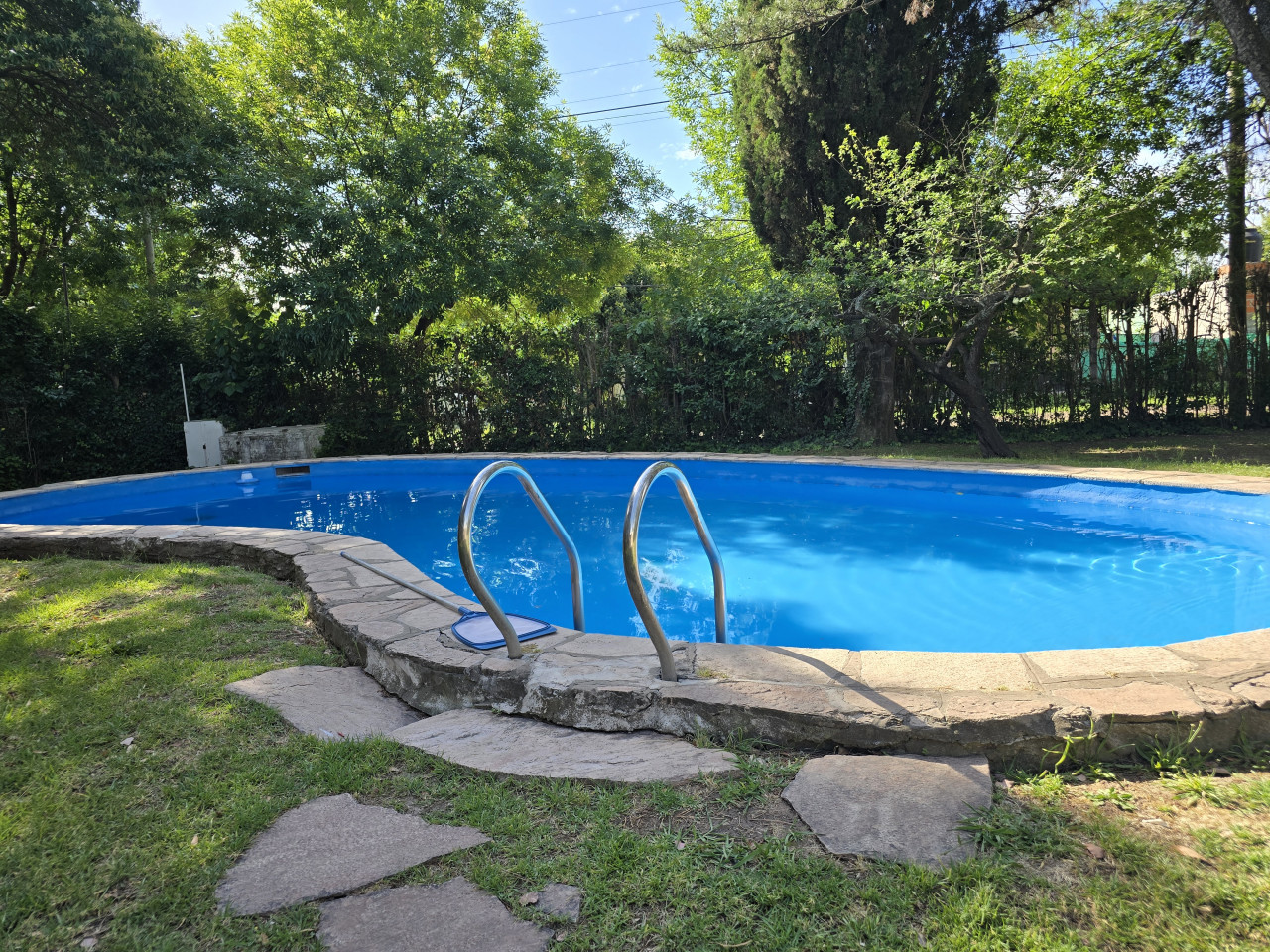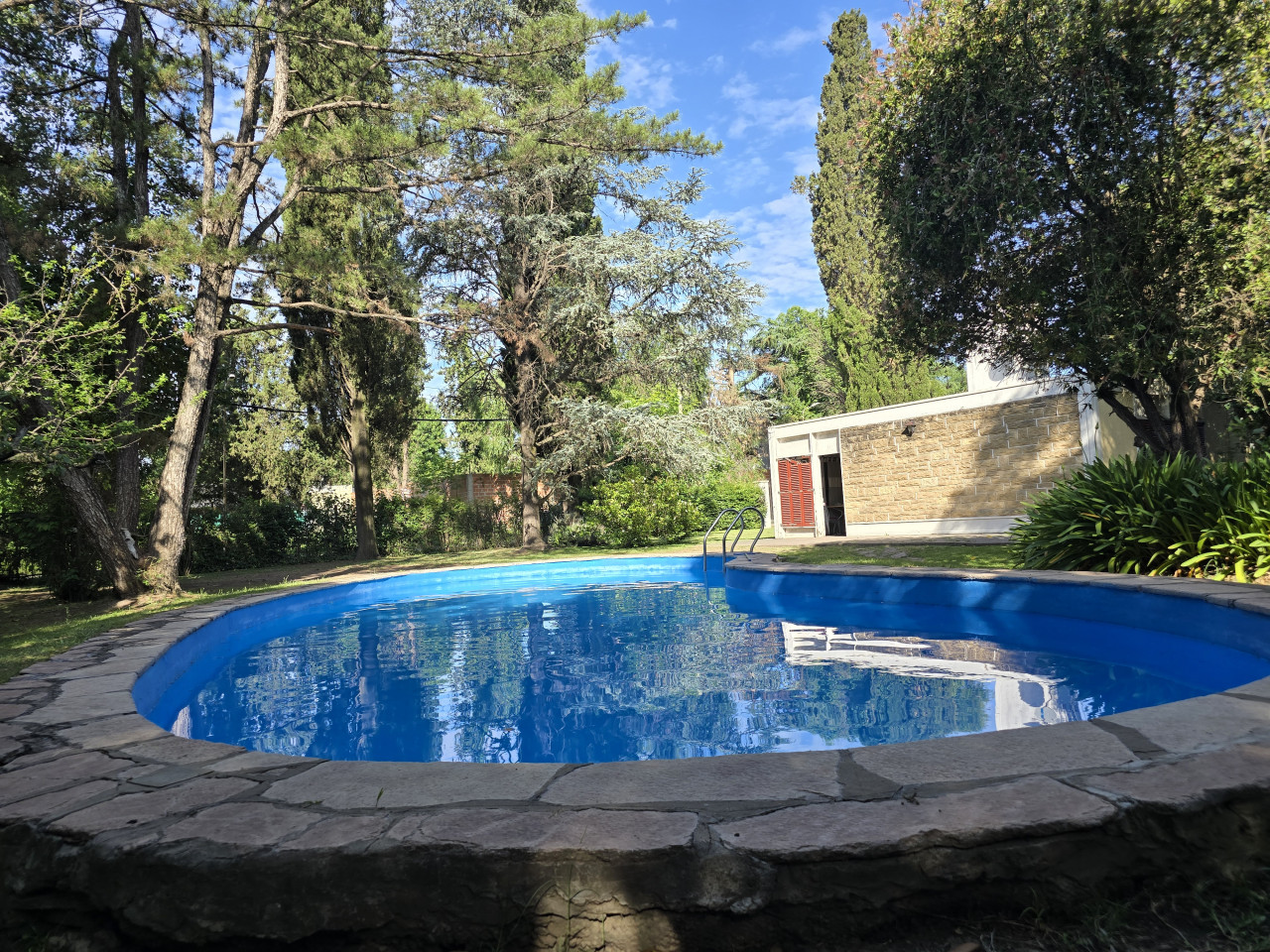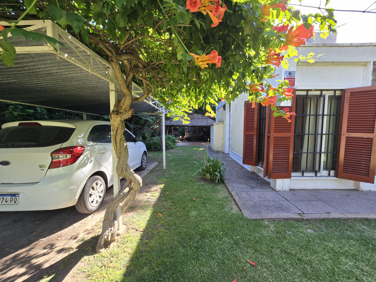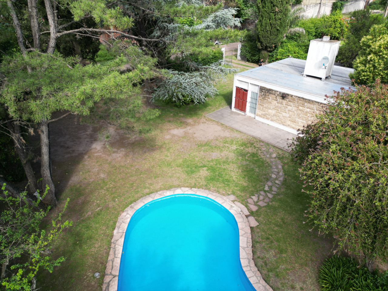 Cuenta con una casa en buen estado con 2 dormitorios, cocina comedor diario, 1 baño, con un total de 53,2 mt2 cubiertos, estructura de hierro, techo de chapa, alarma, pileta con su sistema de limpieza, quincho de paja con Parrilla y Sistema de Riego.